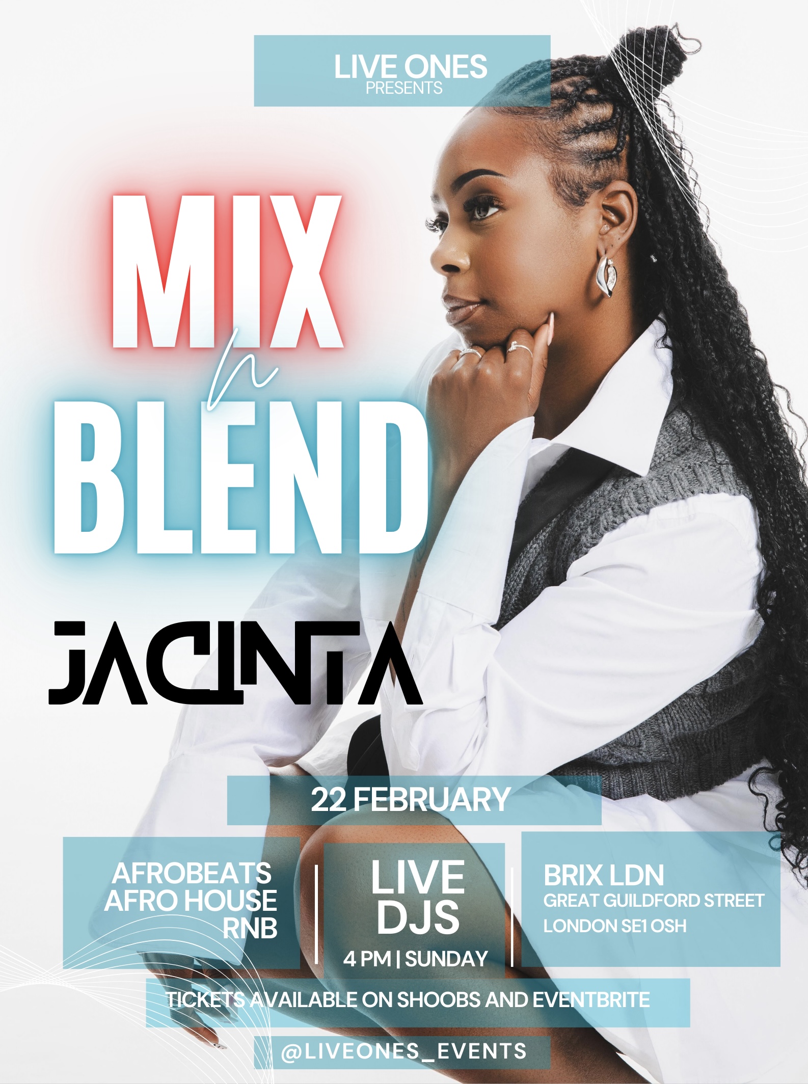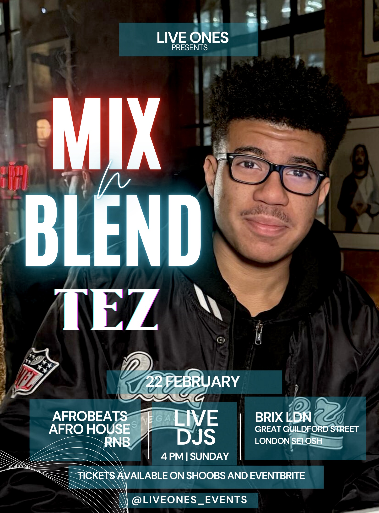 Mix n Blend is a brand new event where we provide you with the best DJ’s from the Afrobeat, Afro house and Rnb world. Enjoy incredible DJs on the luxurious surroundings of the Brix LDN. The perfe...